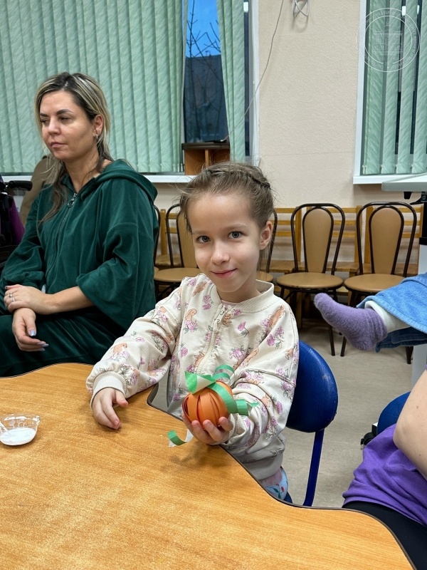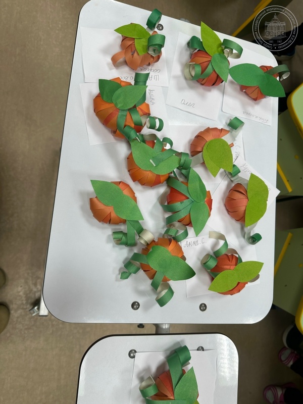 На занятии царила атмосфера волшебства: обычные полоски бумаги скручивались, соединялись и вдруг превращались в пухленькую, объёмную тыковку. Ребята с большим старанием подбирали цвета, старались сделать свою поделку самой аккуратной.