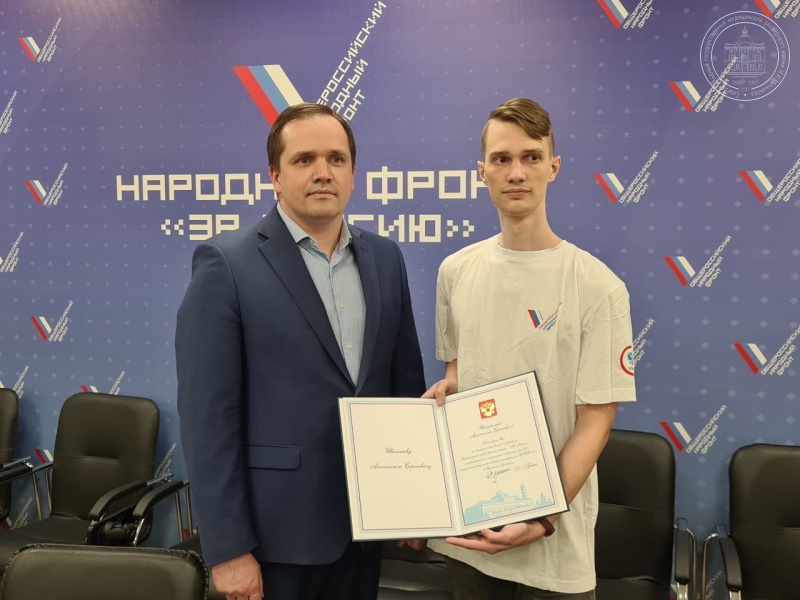 Вручение Благодарственного письма Президента РФ студенту лечебного факультета СЗГМУ им. И.И. Мечникова Анатолию Иванкову