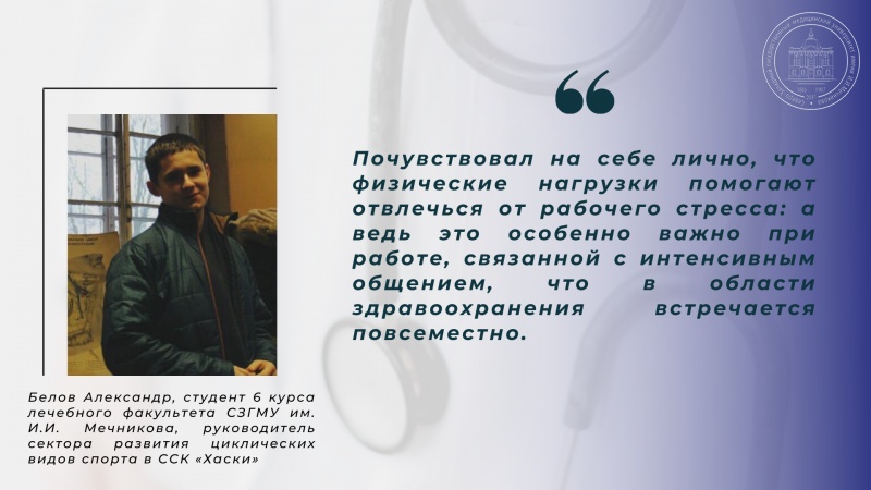 Белов Александр, студент 6 курса лечебного факультета СЗГМУ им. И.И. Мечникова, руководитель сектора развития циклических видов спорта в ССК «Хаски»