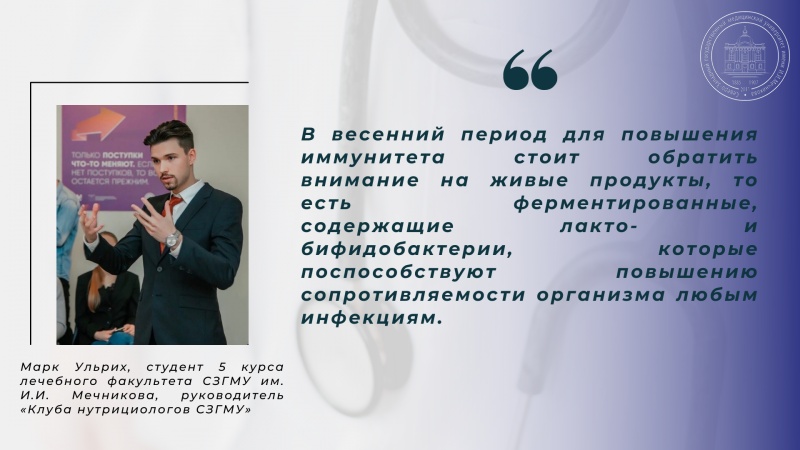 Марк Ульрих, студент 5 курса лечебного факультета СЗГМУ им. И.И. Мечникова, руководитель «Клуба нутрициологов СЗГМУ»