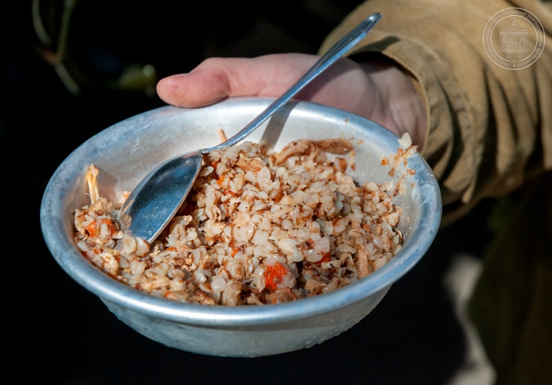 Участники митинга возложили цветы к монументу и почтили память погибших минутой молчания. Затем расположившись у полевой кухни и отведав солдатской каши, ребята делились друг с другом историями своих прабабушек и прадедушек, тех, кто был на фронте и трудился в тылу.