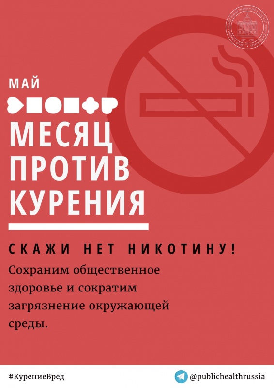 Департамент общественного здоровья, коммуникации и экспертной деятельности Минздрава России в рамках мероприятий по популяризации здорового образа жизни и укрепления общественного здоровья запускает флешмоб «Месяц против курения». Чтобы принять участие, необходимо сделать и опубликовать в социальных сетях фотоматериалы своего спортивного и здорового досуга с хэштегом #КурениеВред.