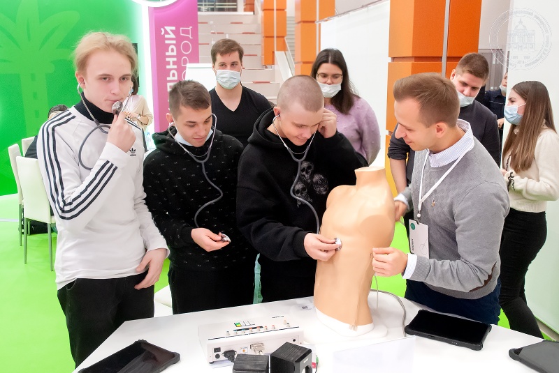 «Сегодня недостаточно просто рассказывать какая профессиональная деятельность в медицине или в социальной сфере, сегодня есть необходимость в демонстрации этих навыков, и я рад, что мы смогли обеспечить это на площадке. Здесь у нас представлен симулятор, который позволяет обучать аускультации, и мы рассказываем, как доктор с помощью фонендоскопа уже может подозревать какие-то заболевания у пациента. Наши участники с удовольствием отличают норму от какой-то патологии. Мы еще используем симулированную анатомию – анатомический атлас 3D для того, чтобы ребята могли увидеть, как по-настоящему выглядят органы»