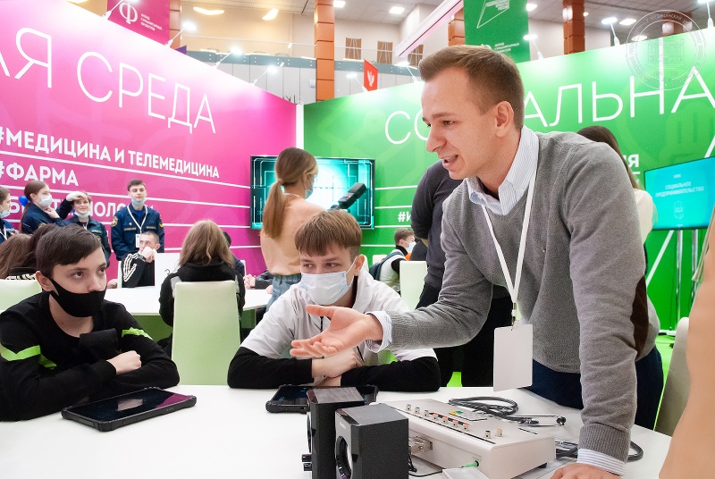 На площадке исторического парка «Россия – Моя история» в Санкт-Петербурге состоялось ключевое событие проекта – «Фестиваль профессий», где была представлена самая крупная мультимедийная выставка. На протяжении полутора месяцев школьники знакомились с самыми разными профессиями, которые востребованные в стране. Наш университет представил секцию «Здоровая среда» и знакомил ребят с врачебной практикой – это первичный прием и различные методики.