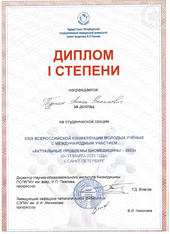 Студент кафедры патологической анатомии Антон Турчин занял 1 место на конференции «Актуальные проблемы биомедицины-2023»