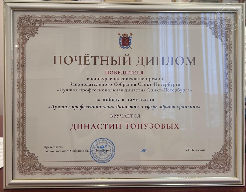 Династия Топузовых – лауреаты премии Законодательного Собрания «Лучшая профессиональная династия Санкт-Петербурга»
