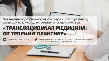 Приглашаем вас к участию в 9-й научно-практической конференции студентов, аспирантов, молодых ученых и специалистов «Трансляционная медицина: от теории к практике», которая состоится 22 апреля 2021 года