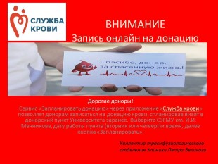 Акция «День донора» — ежегодное мероприятие, которое организуют студенческие медицинские отряды Санкт-Петербурга. В течение двух дней, 11 и 12 марта, две крупные площадки медицинских вузов — СЗГМУ им. И.И. Мечникова и ПСПбГМУ им. И.П. Павлова — принимали тех, кто готов сдать кровь.